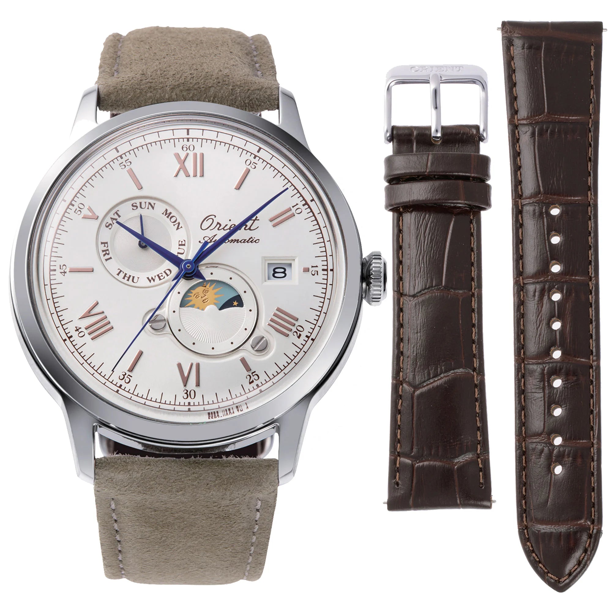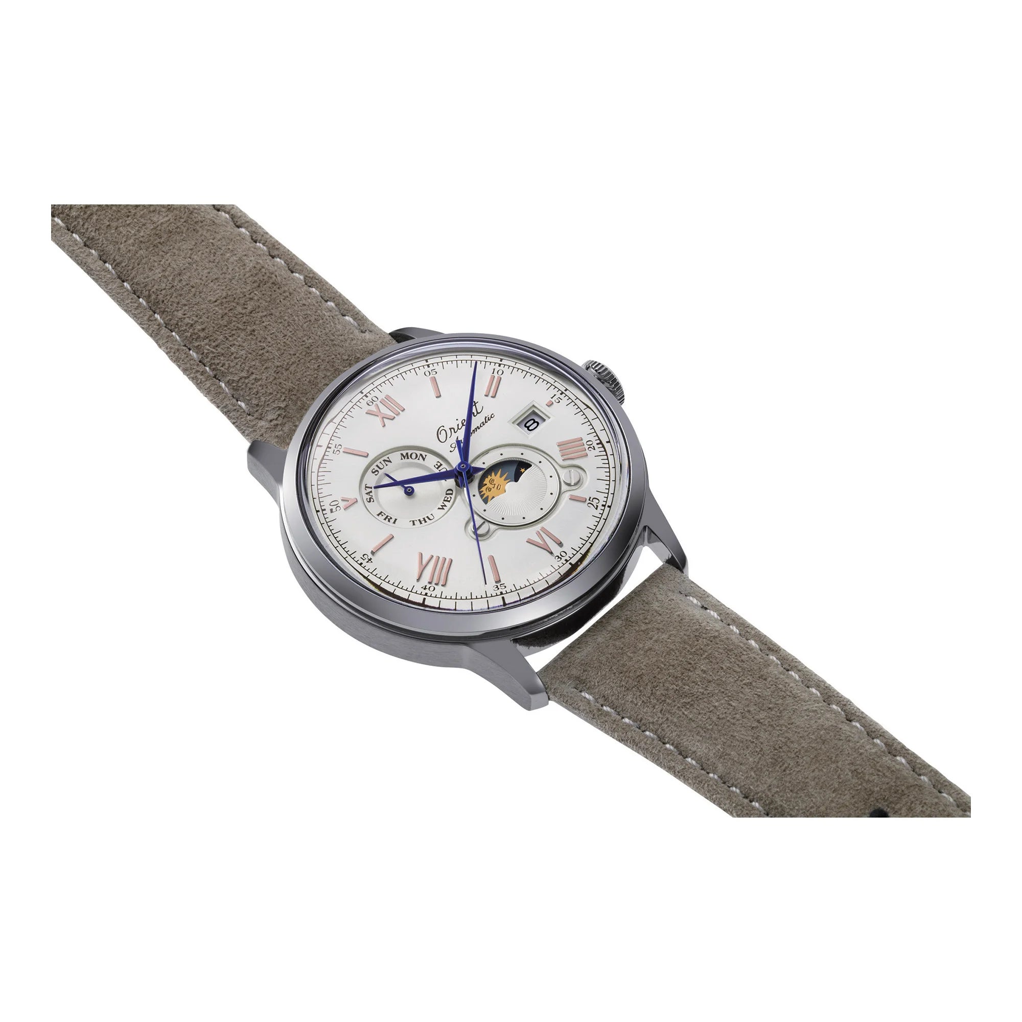 Complicazione giorno/notte al centro della scena: un disco illustrato alterna sole e luna accompagnando lo scorrere delle ore con immediatezza visiva. L’impianto estetico è quello del classico orologio da abito, con vetro bombato, quadrante curvo e minuteria ordinata. Indici applicati o numeri romani, sfere affusolate e datario integrato completano un disegno armonico. Palette dal blu allo champagne, con finiture radiali o fumé, valorizzano un’eleganza attuale.