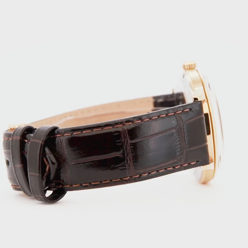 Un classico da abito in chiave rétro: vetro bombato e quadrante curvo dialogano con una grafica a numeri romani e minuteria chemin de fer, dettagli che richiamano i segnatempo da cerimonia. Sfere affusolate e proporzioni bilanciate favoriscono una lettura pulita, mentre la finestra data si integra con discrezione. Cinturini in pelle ampliano le combinazioni, dalle tonalità formali ai toni caldi di nuova ispirazione. Finiture lucide e satinate ne accentuano il profilo, comodo sotto il polsino.