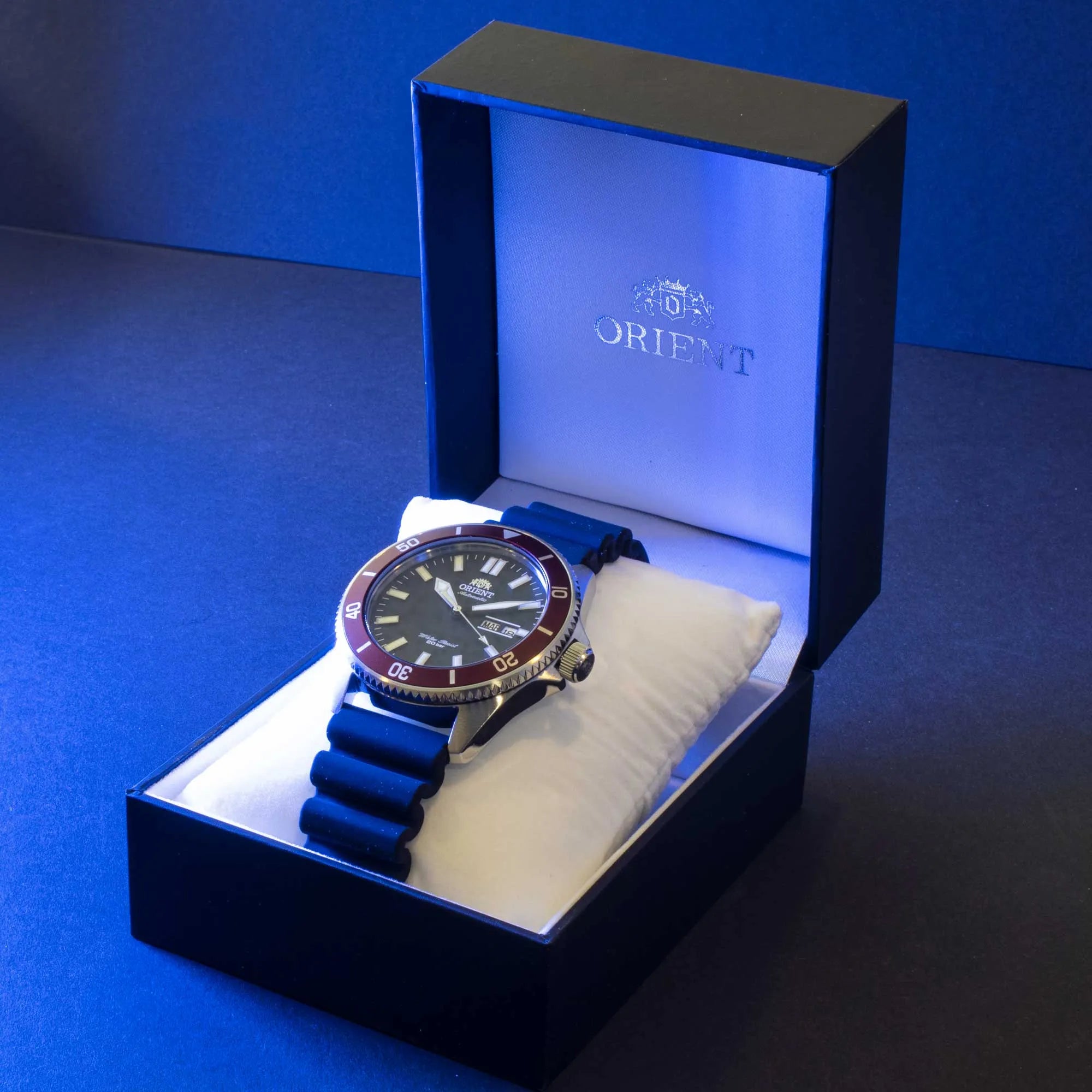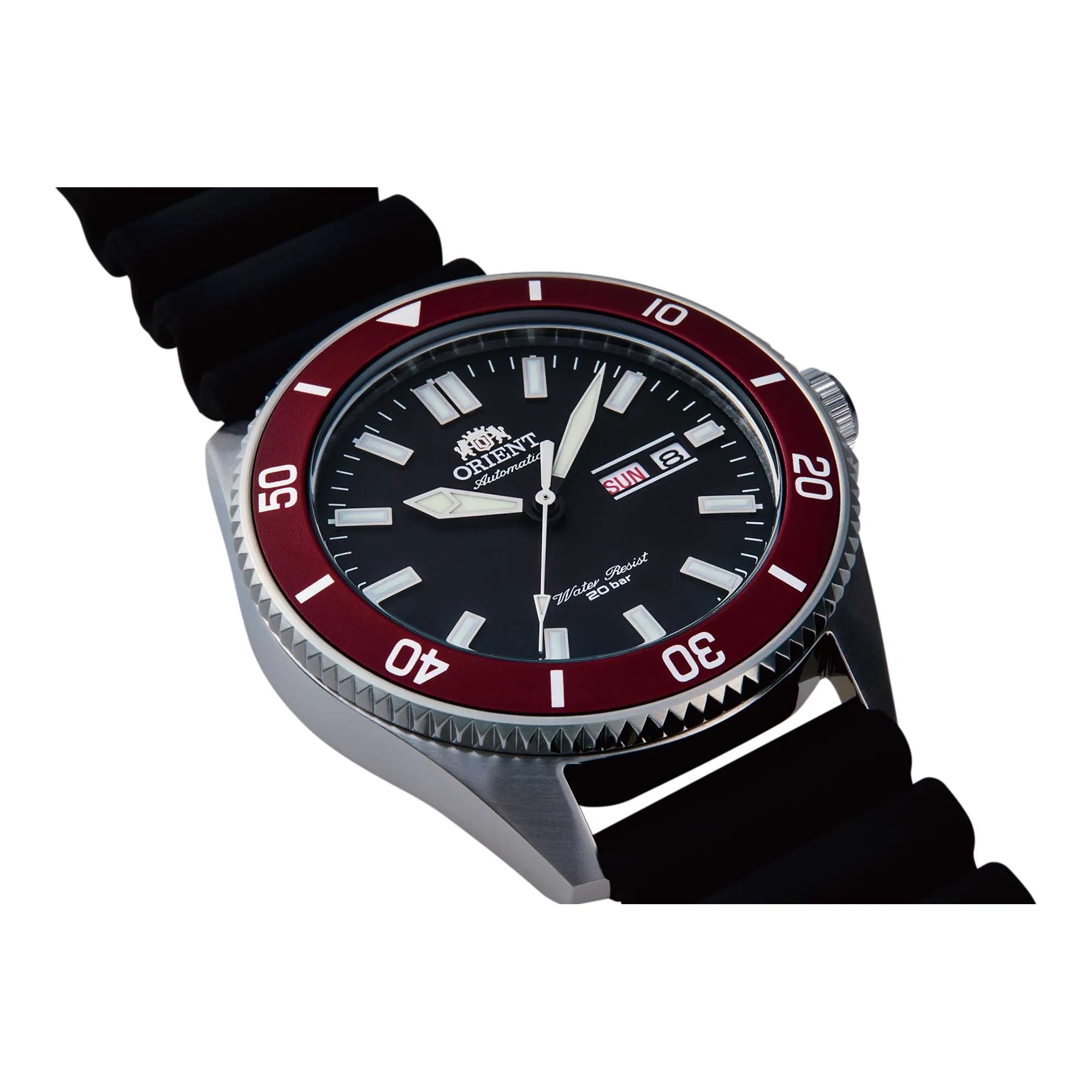 Modello portabandiera della collezione ORIENT Sport e figlio maggiore della famiglia Diver, si distingue per le maggiori dimensioni rispetto al Mako e al Kamasu, è adatto ad ogni occasione avventurosa o metropolitana. Qui in variante con cinturino in morbido silicone, quadrante nero grafite e ghiera rosso persia.