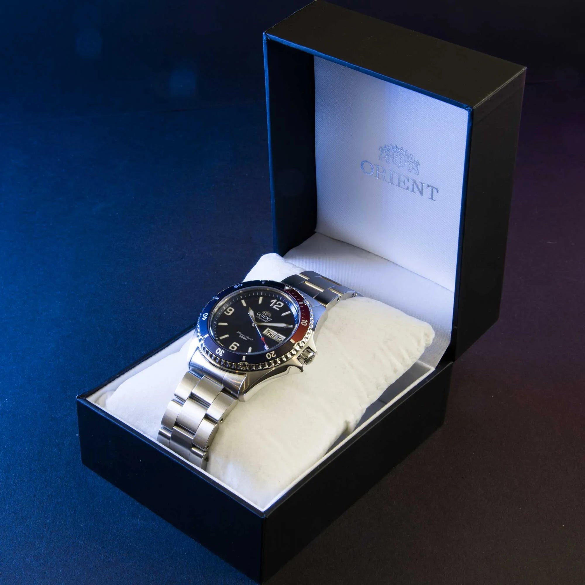 Un diver classico con due interpretazioni: indici tondi essenziali oppure grandi numeri arabi che accendono il carattere sportivo. Lunetta scanalata a forte presa, quadrante pulito con finestra day-date e lancetta dei secondi a punta colorata rendono la lettura immediata. Al polso, bracciale in acciaio dal taglio deciso o cinturino in gomma per un’impronta più dinamica. Un’estetica solida, disegnata per l’uso quotidiano e capace di attraversare stili e stagioni.