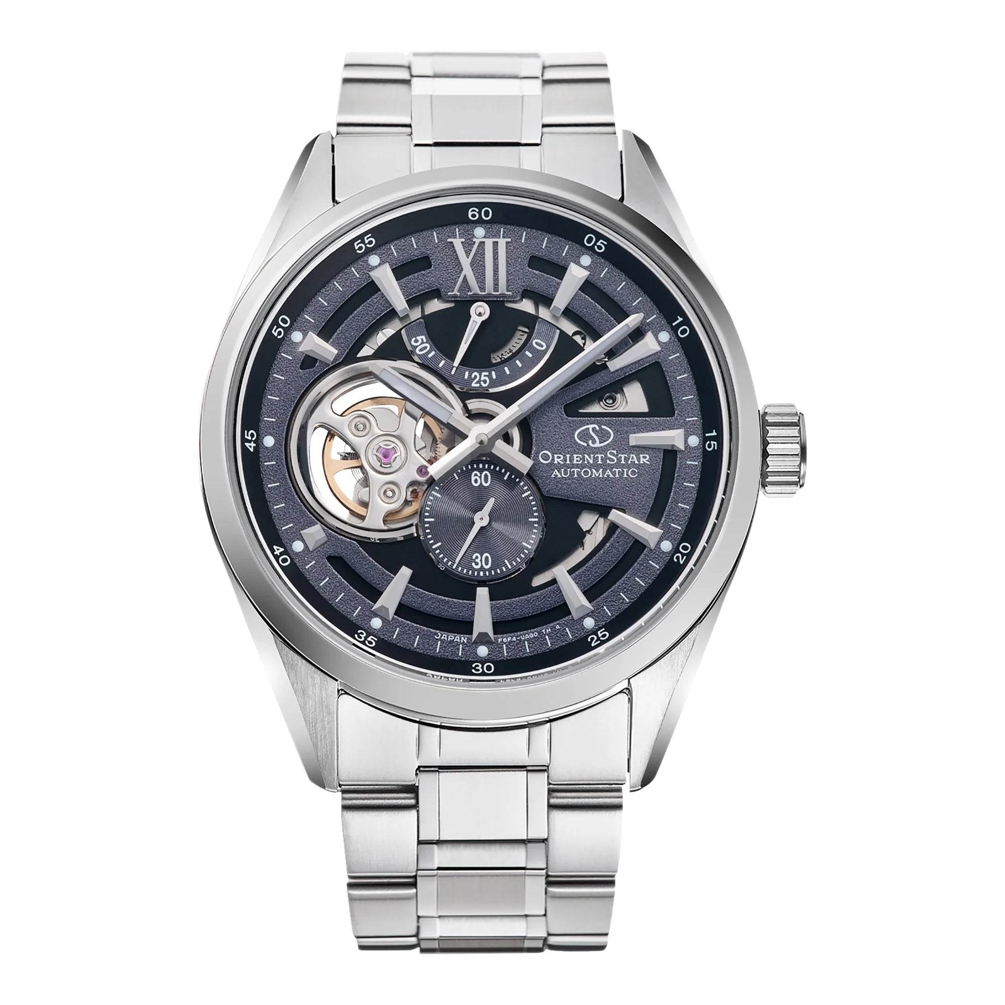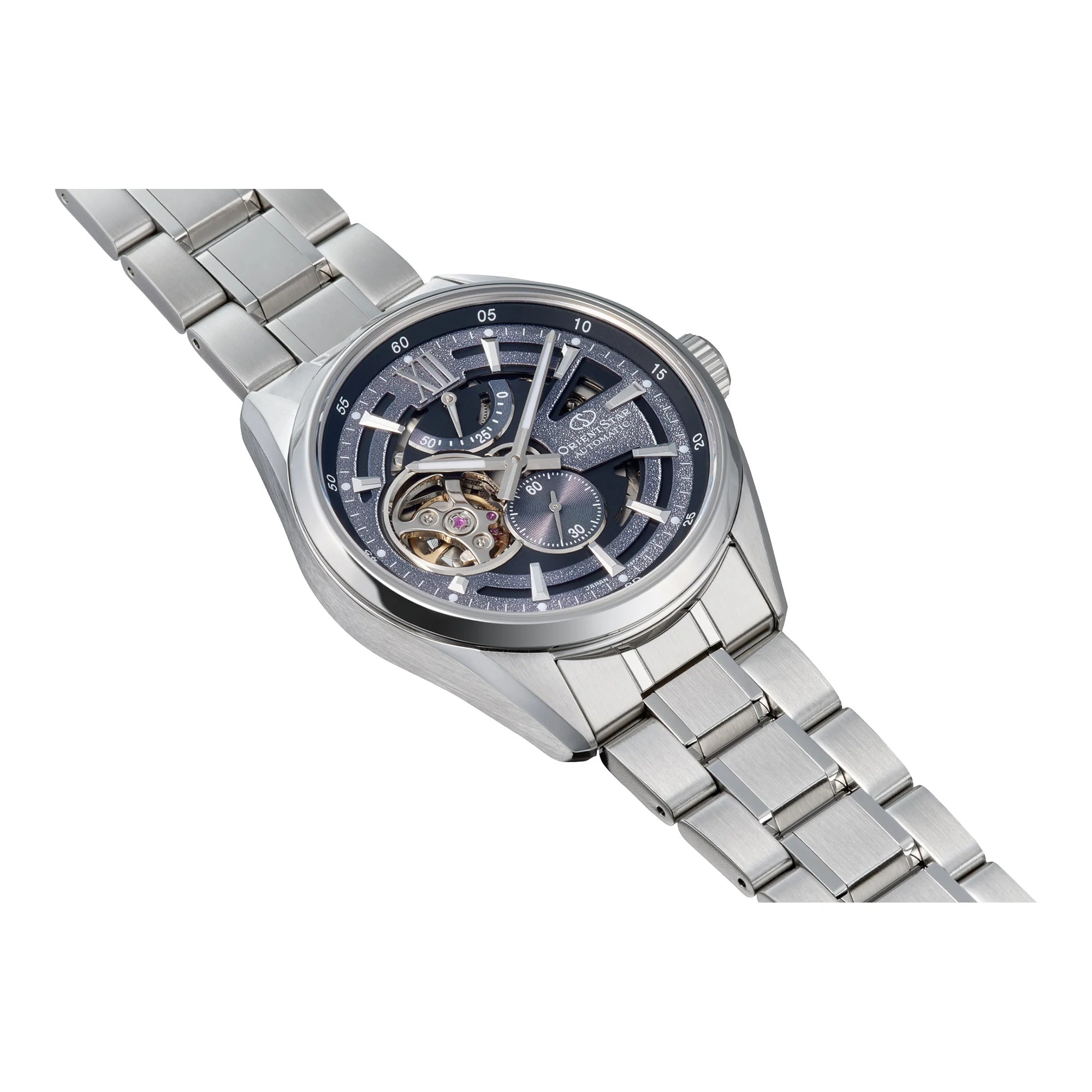 Scheletratura come segno distintivo: ponti a vista e bilanciere in movimento costruiscono una scena dinamica. Indici applicati e lancette dal profilo netto mantengono ordine e leggibilità, mentre la minuteria perimetrale guida lo sguardo tra i diversi livelli del quadrante. Finiture alternate e lavorazioni a raggiera amplificano i giochi di luce. Vetro zaffiro e fondello trasparente sottolineano la cura costruttiva. Bracciale in acciaio o cinturini in pelle, secondo le varianti. Equilibrio tra tecnica esibita ed eleganza quotidiana.