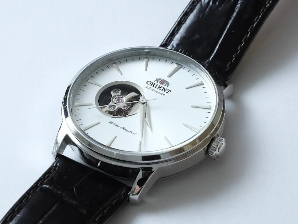 Protagonista resta l’open heart: la finestra sul quadrante svela il bilanciere e introduce un ritmo visivo continuo. Il linguaggio è quello dell’orologio da abito, con vetro bombato, quadrante dolcemente curvo e una minuteria ordinata che privilegia la chiarezza. Indici applicati o numeri romani, a seconda delle varianti, dialogano con finiture radiali o fumé che ampliano la profondità. Cinturini in pelle coordinati completano un insieme elegante e distintivo.