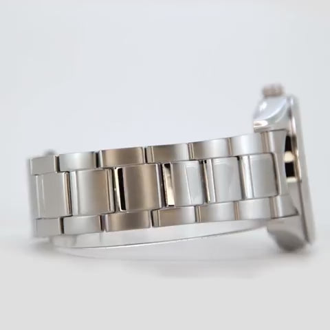 Estetica contemporanea ispirata ai paesaggi urbani: indici sfaccettati evocano profili architettonici e una finitura a raggiera che si chiude in un arco illumina il quadrante, con data integrata con discrezione. Anse lucidate a specchio e forme bilanciate completano il disegno. Indici e sfere con Luminous Light facilitano la lettura, mentre il fondello a vista svela il movimento. Varianti blu, bianco e marrone e scelte tra bracciale in acciaio o cinturino a sgancio rapido, secondo le versioni.