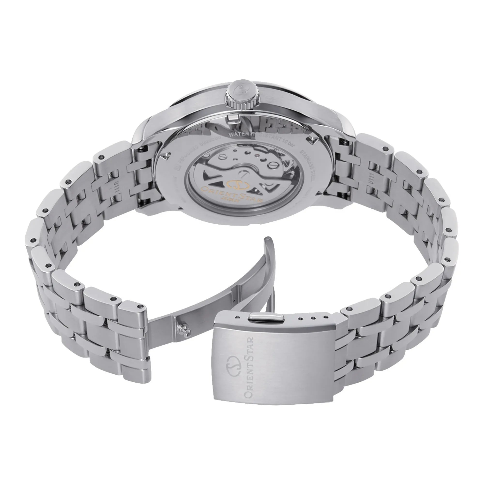 Scopri l'esclusiva collezione Contemporary, un'espressione di design raffinato e ingegneria di precisione. L'orologio Layered Skeleton di ORIENT STAR è un connubio di meccanica e stile, pensato per l'uomo che apprezza l'eleganza casual e l'eccellenza orologiera giapponese. Questo modello distintivo presenta una cassa rotonda in acciaio inossidabile, con un diametro di 41 mm e uno spessore di 14 mm, che offre una presenza notevole al polso. Il vetro zaffiro, noto per la sua eccezionale resistenza ai graffi, protegge il sofisticato quadrante, mentre la resistenza all'acqua di 100 metri (10 ATM) assicura affidabilità nell'uso quotidiano, anche durante attività acquatiche leggere. Il fondello a vite, con il suo affascinante design trasparente, permette di ammirare il cuore pulsante dell'orologio. La corona a pressione e tiro facilita l'impostazione dell'ora. Al suo interno batte il movimento meccanico a carica automatica e manuale ORIENT F6F44. Questo calibro di manifattura, impreziosito da 22 rubini, garantisce una notevole riserva di carica, indicata sul quadrante, e un'accuratezza giornaliera tra +25 e -15 secondi. La funzione hacking consente una regolazione precisa dell'ora al secondo. Il design "Layered Skeleton" svela con maestria parte del meccanismo, creando un effetto tridimensionale e dinamico che cattura lo sguardo. Le lancette e gli indici sono dotati di luminescenza, garantendo una leggibilità ottimale in ogni condizione di luce. Il bracciale, con un'ansa di 20 mm e una lunghezza standard di 19 cm, si chiude saldamente grazie a una fibbia déployante pieghevole con pulsante, offrendo comfort e sicurezza al polso. Con un peso di 151 grammi, questo orologio è robusto e ben bilanciato, ideale per essere indossato ogni giorno. Ogni orologio ORIENT STAR è accompagnato da un manuale di istruzioni e beneficia di una garanzia internazionale di 2 anni, testimonianza dell'impegno del marchio per la qualità e la soddisfazione del cliente. Scegli un capolavoro di orologeria che combina tradizione e innovazione.