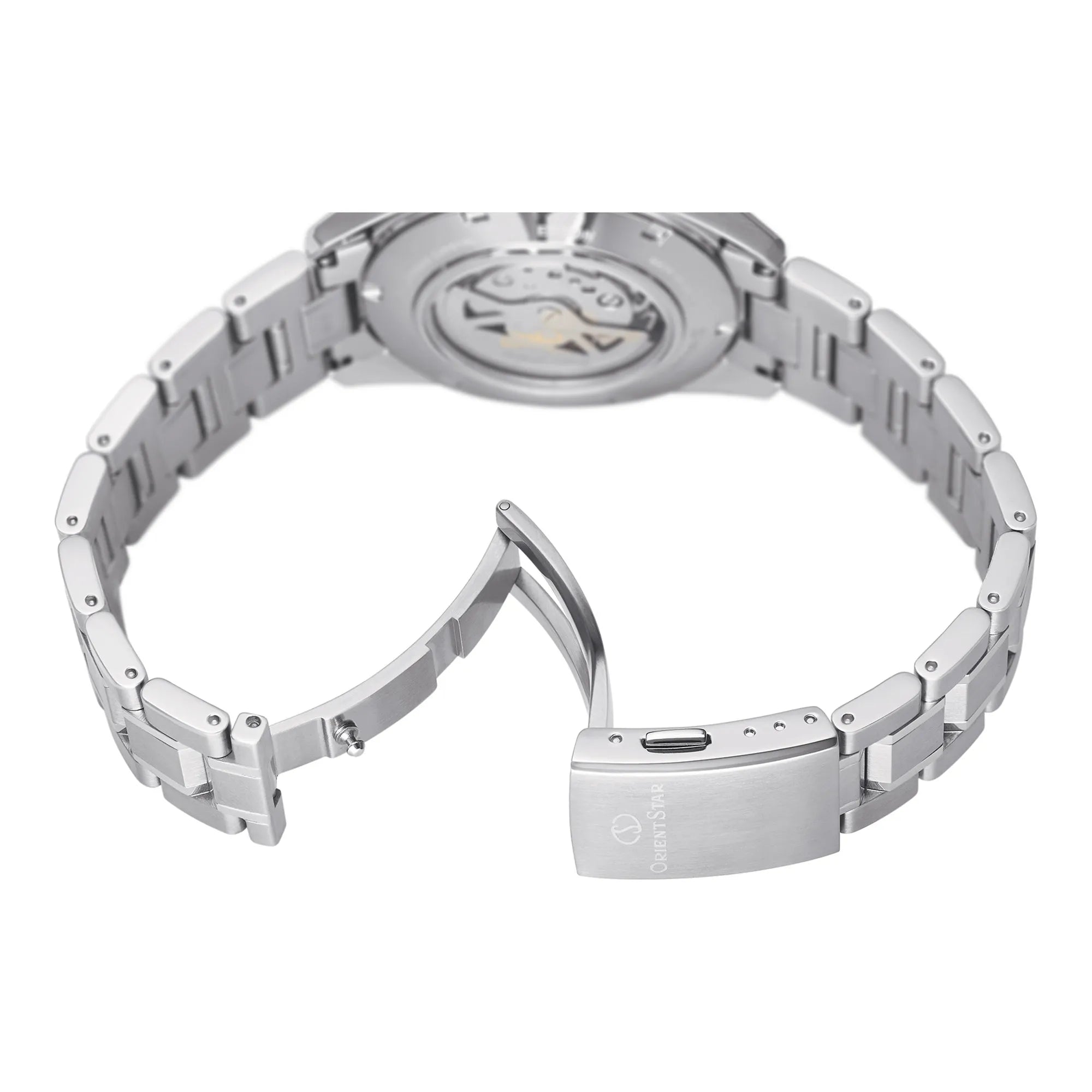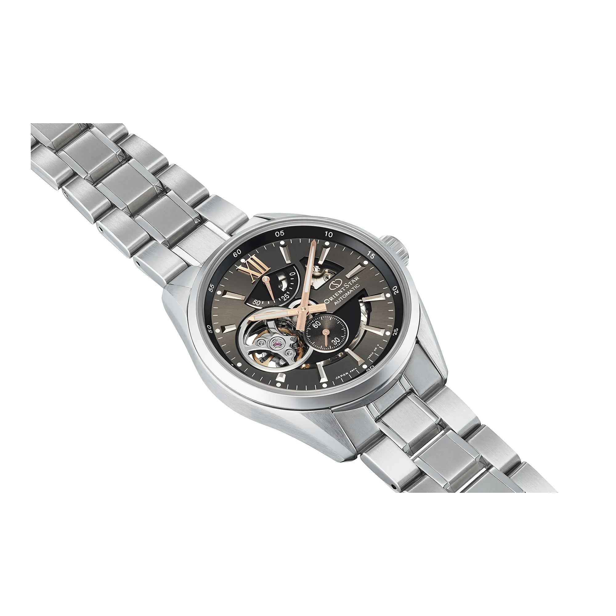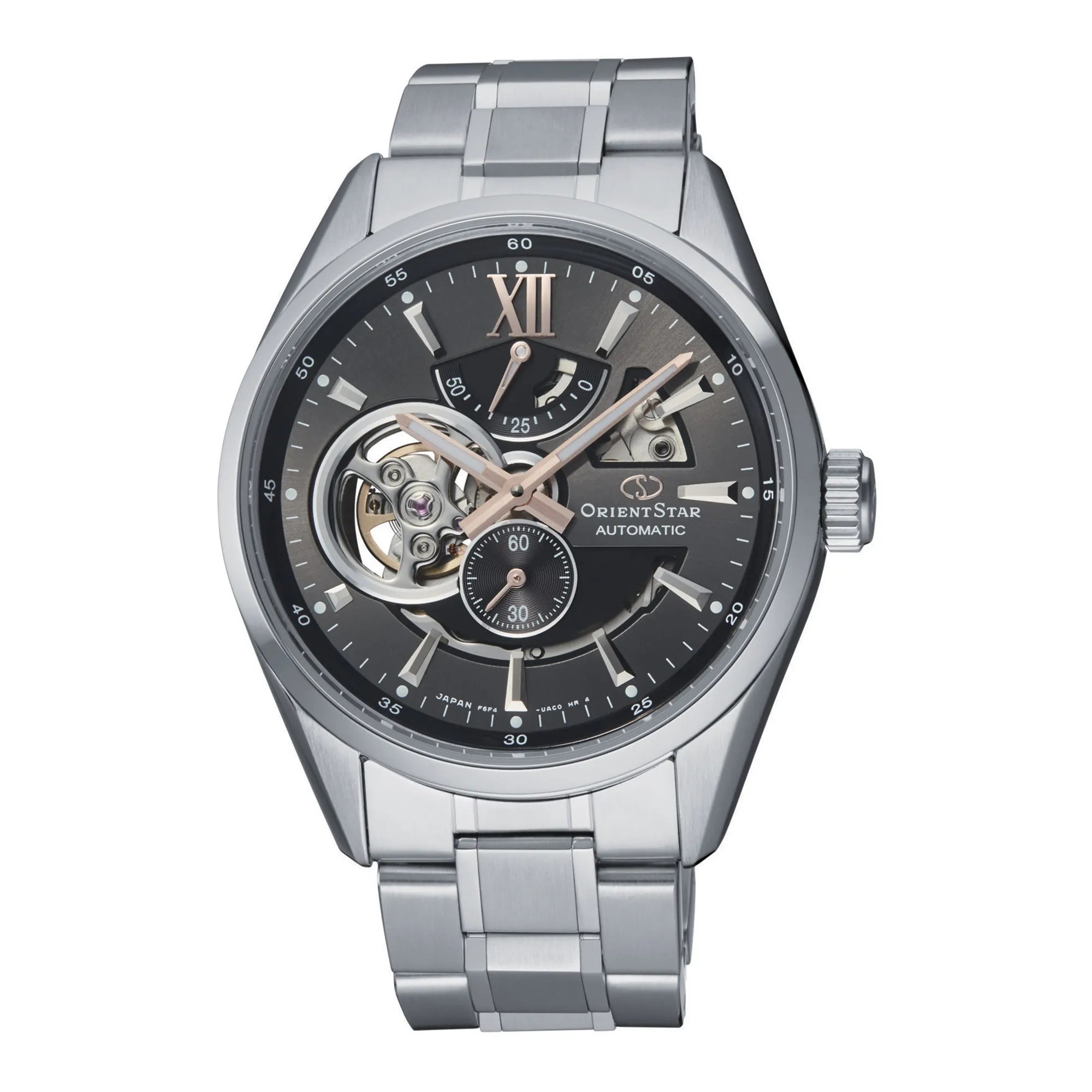 Meccanica protagonista in chiave contemporanea: la scheletratura disegna livelli sovrapposti che mostrano ruote e bilanciere in movimento, con un’architettura dal segno netto. Indici applicati e lancette affusolate preservano ordine e leggibilità, mentre finiture alternate e lavorazioni a raggiera guidano la luce tra i piani. Vetro zaffiro e fondello trasparente attestano la cura costruttiva. Bracciale o cinturino in pelle secondo le varianti.