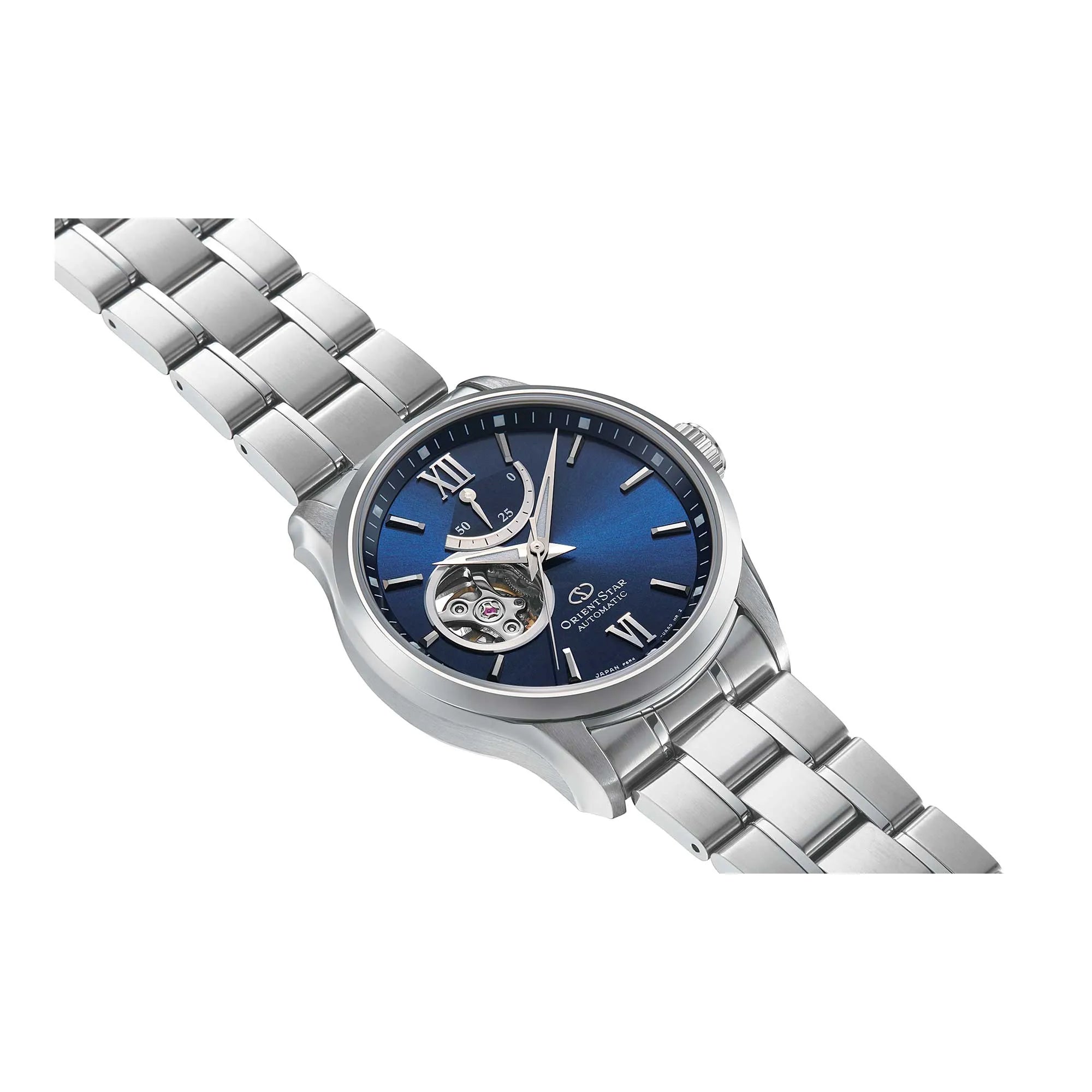 Anima meccanica a vista in chiave contemporanea: l’apertura sul lato sinistro del quadrante mostra il bilanciere, mentre l’indicatore di riserva di carica in alto aggiunge funzionalità e ritmo visivo. Il disegno a più livelli con finiture radiali crea profondità e mantiene ordine, con indici e lancette trattati Luminous Light per una lettura chiara. Vetro zaffiro con trattamento antiriflesso e fondello trasparente sottolineano la cura costruttiva;i cinturini in pelle completano un’estetica elegante ma decisa.