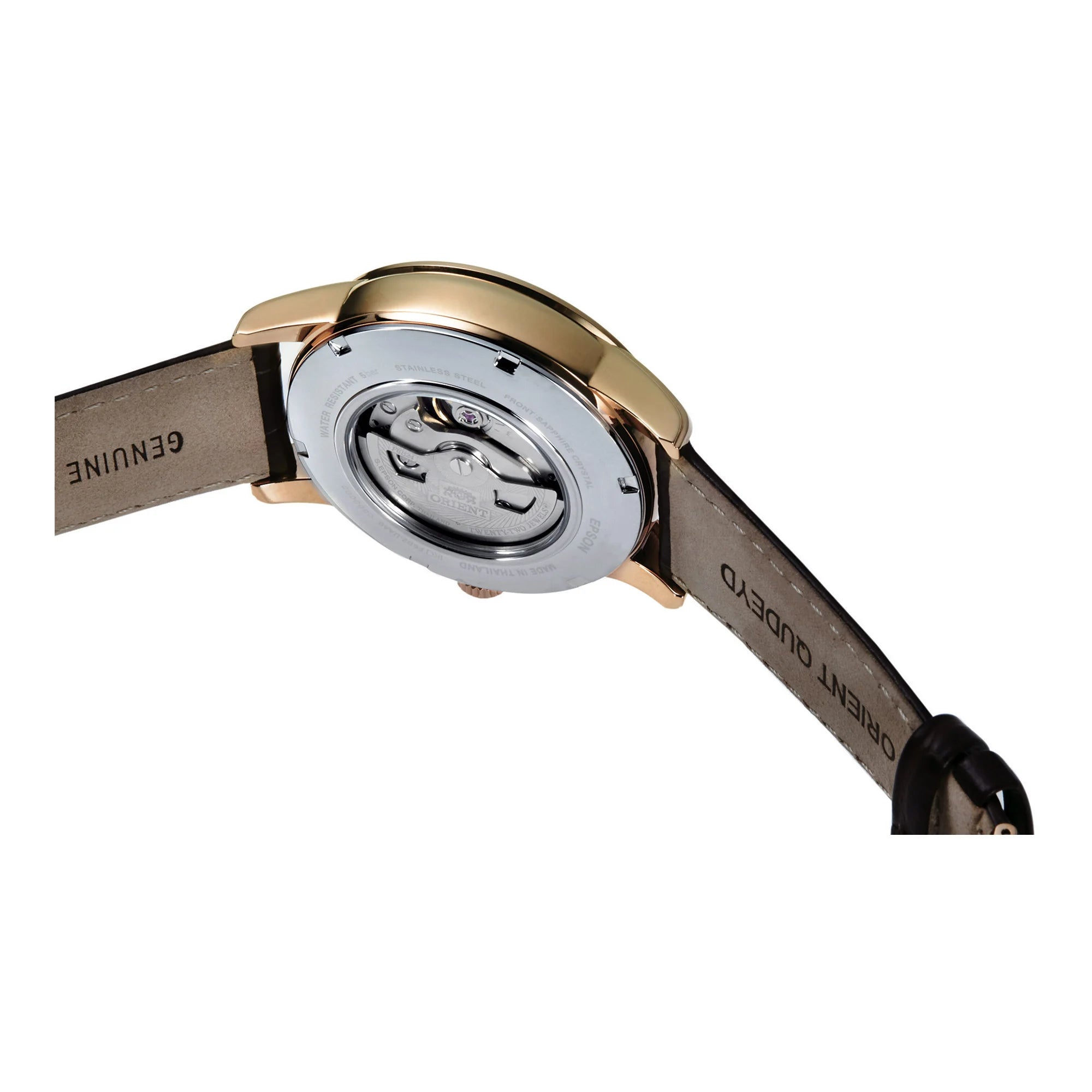 Complicazione giorno/notte come segno distintivo: un disco illustrato alterna sole e luna scandendo le ore con immediatezza visiva. Quadrante dal gusto classico con numeri romani o indici applicati, minuteria ordinata e sfere affusolate valorizzano la leggibilità. Calendario con data e giorno integrati nei contatori dedicati. Finiture lucide e satinate, palette dal blu al champagne e cinturini in pelle definiscono un equilibrio tra tradizione e attualità.
