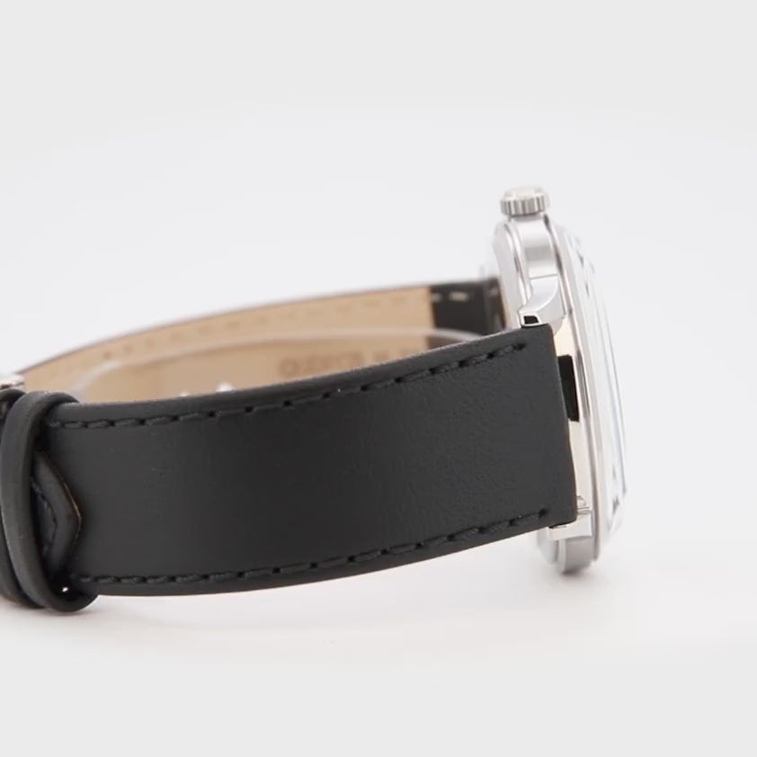 Un classico da abito in chiave rétro: vetro bombato e quadrante curvo dialogano con una grafica a numeri romani e minuteria chemin de fer, dettagli che richiamano i segnatempo da cerimonia. Sfere affusolate e proporzioni bilanciate favoriscono una lettura pulita, mentre la finestra data si integra con discrezione. Cinturini in pelle ampliano le combinazioni, dalle tonalità formali ai toni caldi di nuova ispirazione. Finiture lucide e satinate ne accentuano il profilo, comodo sotto il polsino.