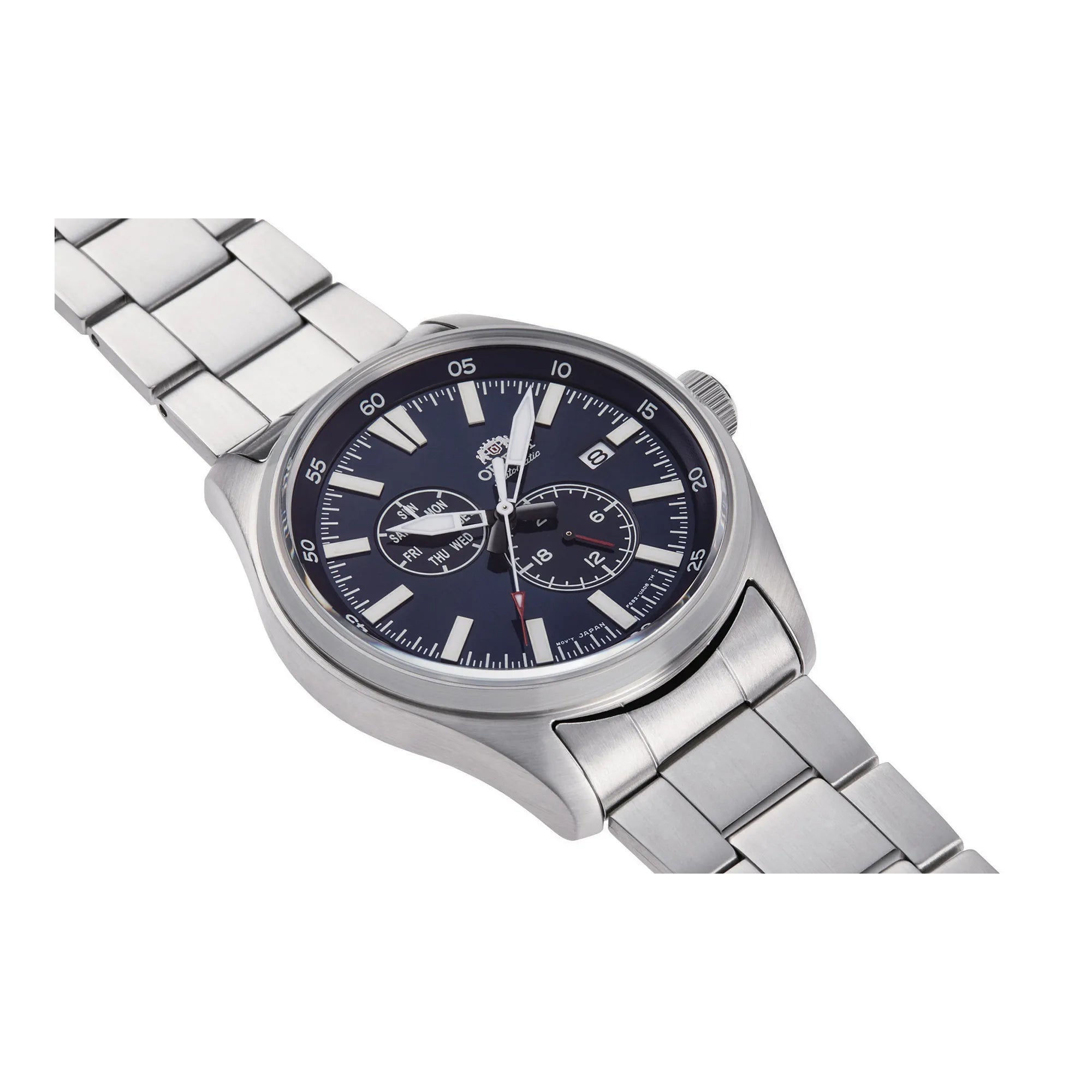 Scopri la collezione ORIENT Sports, sinonimo di affidabilità e stile per l’uomo contemporaneo. Ogni orologio ORIENT unisce tradizione e innovazione, offrendo segnatempo solidi e curati nei dettagli. Questo modello, ispirato alla serie Field, è pensato per chi desidera un compagno preciso e resistente, adatto tanto alle attività quotidiane quanto ai momenti di relax. Al suo interno è equipaggiato con il movimento meccanico automatico ORIENT Calibro F6B22. Dotato di 22 rubini, offre una precisione stimata di +25/-15 secondi al giorno. Dispone di carica automatica, possibilità di carica manuale e funzione hacking per una regolazione dell’ora accurata. Il quadrante presenta tre lancette e l’indicazione di giorno e data, funzionalità pratiche per l’uso quotidiano. La cassa in acciaio inossidabile, dal diametro di 43 mm e spessore di 12 mm, conferisce al modello una presenza solida e bilanciata al polso. La resistenza all’acqua è garantita fino a 100 metri (WR 100mt), grazie alla corona e al fondello a vite che proteggono il movimento interno da infiltrazioni. Il vetro minerale, resistente agli urti, salvaguarda il quadrante, mentre gli indici e le lancette trattati con materiale luminescente assicurano una buona leggibilità anche in condizioni di scarsa illuminazione. Il cinturino è dotato di chiusura deployante con pulsante, per una vestibilità sicura e confortevole. Questo orologio da uomo combina la resistenza tipica di un modello sportivo con un’estetica sobria e versatile, adatta a ogni occasione. Un segnatempo automatico affidabile e ben progettato, ideale per chi cerca funzionalità, qualità costruttiva e uno stile essenziale ma distintivo.