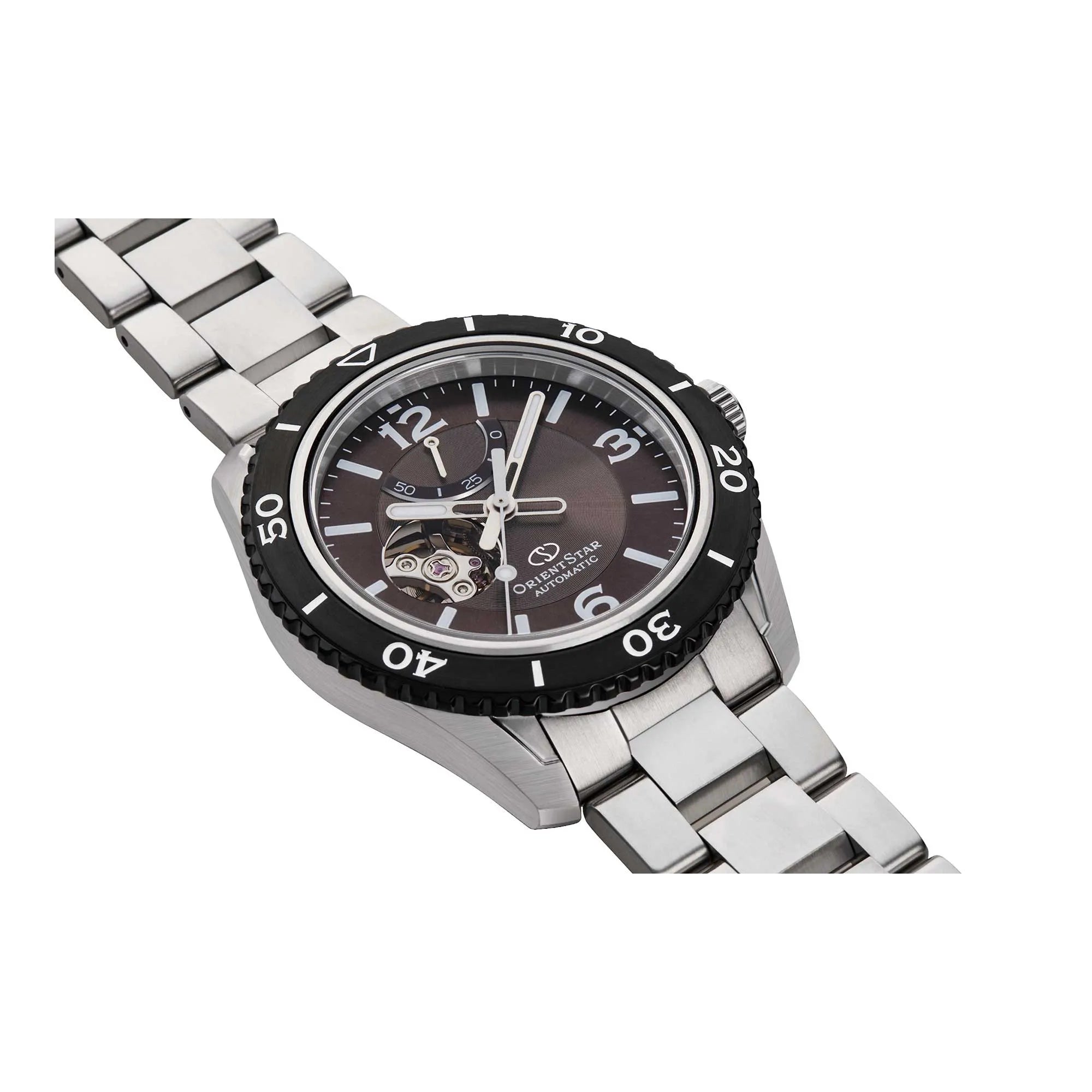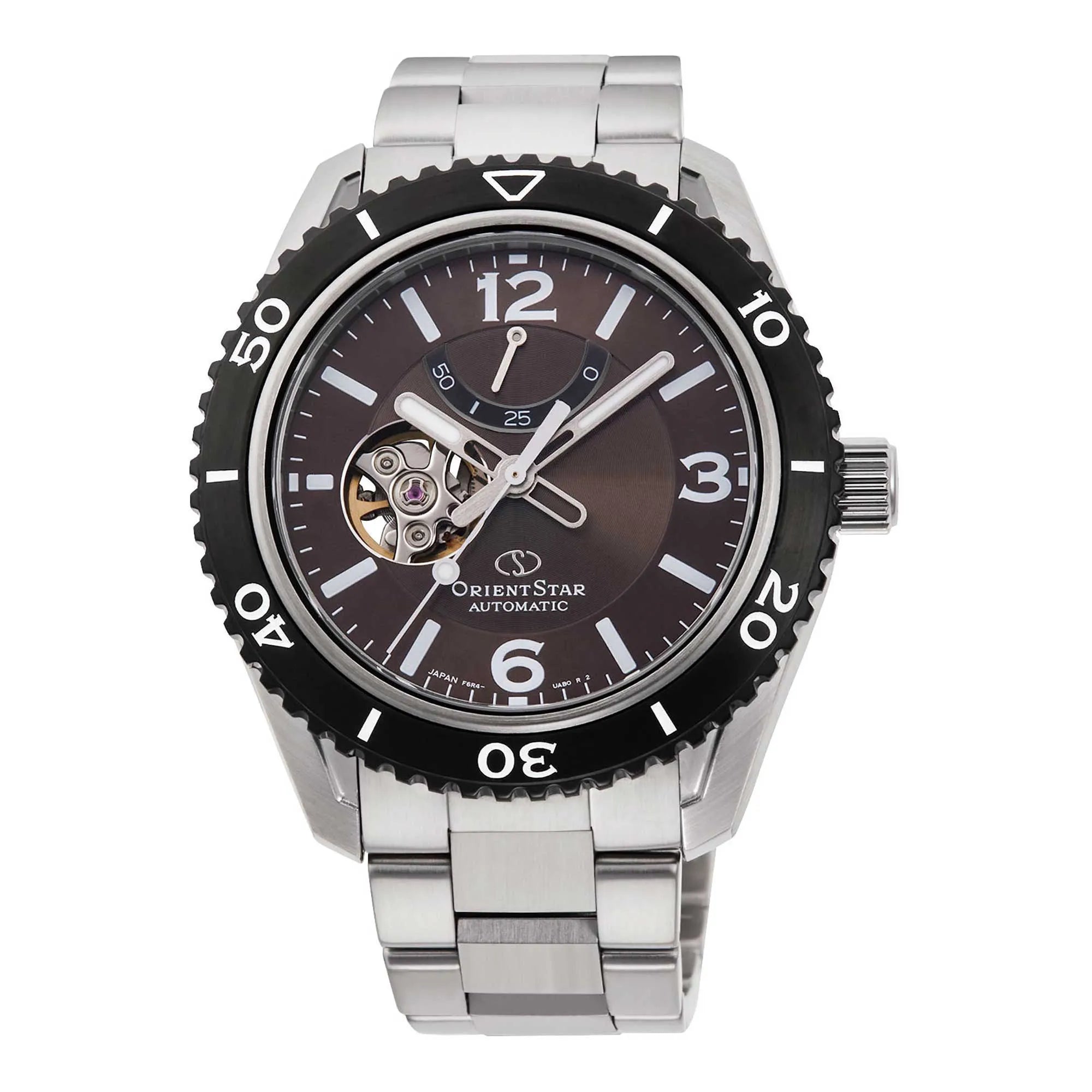 Questo segnatempo ORIENT STAR Sport Semi Skeleton Open Heart presenta un anima sportiva e moderna. Dotato del celebre cuore aperto che mostra i segreti del suo inestimabile motore, questo modello è dotato anche di indicatore di carica, vetro zaffiro antiriflesso, fondello a vite ed un quadrante di personalità con numeri arabi ad ore 6 e 12 e sfere a lancia. Qua in versione in acciaio con quadrante marrone.