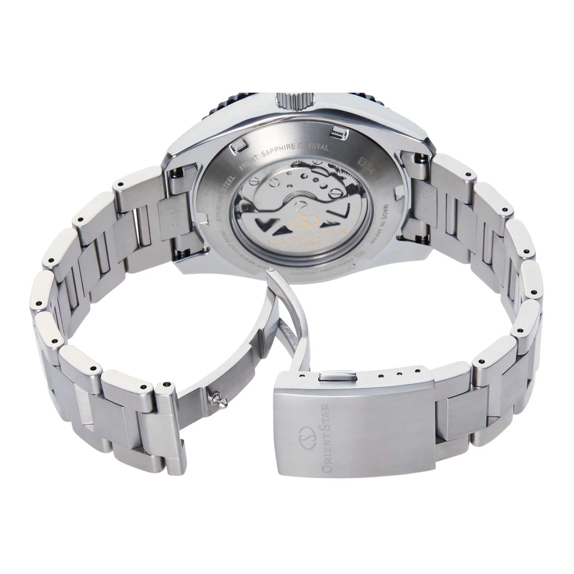Scopri la collezione Sports di ORIENT STAR, l'eccellenza dell'orologeria che combina stile robusto e prestazioni affidabili. Questo modello incarna la passione per lo sport e la precisione. Il suo cuore pulsante è il movimento meccanico automatico calibro F6R42. Un vero gioiello di ingegneria, dotato di 22 rubini, riserva di carica e la pratica funzione di fermo macchina. La sua precisione (+25/-15 secondi al giorno) testimonia l'impegno di ORIENT STAR nella creazione di meccanismi superiori. Il fondello a vite trasparente offre una vista affascinante sull'intricato funzionamento interno, celebrando la maestria artigianale. Costruito per resistere, presenta una cassa rotonda in acciaio inossidabile con un diametro di 43 mm e uno spessore di 13 mm. La robusta ghiera unidirezionale è funzionale per il conteggio del tempo trascorso, mentre la corona a vite e l'impressionante resistenza all'acqua fino a 200 metri lo rendono un orologio subacqueo affidabile, pronto per le immersioni. Il vetro zaffiro antigraffio protegge il quadrante, assicurando una leggibilità impeccabile in ogni condizione. Anche al buio, la leggibilità è garantita dalle lancette e dagli indici luminescenti. La chiusura deployante con pulsante assicura una vestibilità sicura e confortevole al polso. Questo orologio da uomo ORIENT STAR è più di un semplice strumento per misurare il tempo: è una dichiarazione di stile casual e sportivo, un orologio resistente all'acqua pensato per chi vive con energia e apprezzamento per la qualità. Un orologio automatico ideale per chi ama il design solido e le prestazioni da diver.