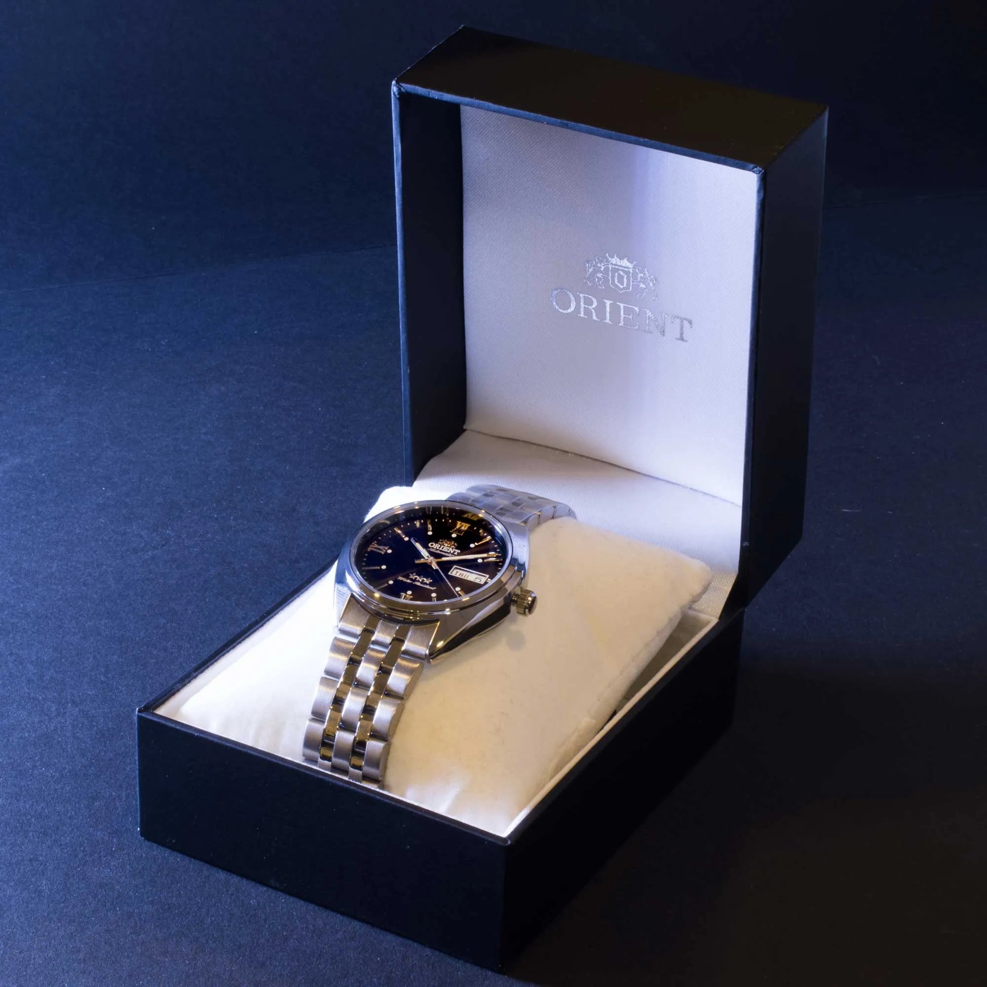 Scopri la leggendaria collezione 3 Star di ORIENT, un’icona di affidabilità e stile che ha attraversato le generazioni mantenendo intatta la sua identità. Ogni modello di questa linea rappresenta la filosofia del marchio, orientata alla precisione, alla durabilità e alla cura dei dettagli. Un segnatempo che unisce estetica classica e prestazioni solide, ideale per accompagnare ogni momento della giornata.La cassa rotonda in acciaio inossidabile, dal diametro di 37 mm e spessore di 11 mm, offre proporzioni equilibrate e un comfort ottimale al polso. Il vetro minerale protegge il quadrante, mentre la corona a pressione consente una regolazione agevole. La resistenza all’acqua ne conferma l’affidabilità nell’uso quotidiano, rendendolo adatto a diverse situazioni.Il movimento automatico ORIENT Calibro F4902, con 21 rubini, garantisce una precisione stimata di +25/-15 secondi al giorno e un funzionamento costante. Questo meccanismo meccanico si ricarica con il naturale movimento del polso, eliminando la necessità di batterie. Il quadrante, con visualizzazione a tre lancette, integra il doppio calendario con indicazione di giorno e data, un dettaglio pratico e funzionale che ne valorizza l’utilità quotidiana. La leggibilità è garantita anche in condizioni di scarsa illuminazione grazie agli indici e alle lancette con trattamento luminescente. Il cinturino in acciaio, largo 19 mm e adatto a polsi fino a 19 cm, è dotato di chiusura deployante pieghevole che assicura stabilità e comfort. Con il suo design sobrio e intramontabile, il modello 3 Star si adatta con naturalezza a stili sia formali che casual, mantenendo sempre un tocco di eleganza essenziale.Un orologio automatico pensato per chi apprezza la qualità costruttiva e la tradizione di ORIENT, capace di coniugare funzionalità e fascino vintage. Un segnatempo affidabile e senza tempo, perfetto per chi cerca un compagno duraturo e dallo stile autentico.